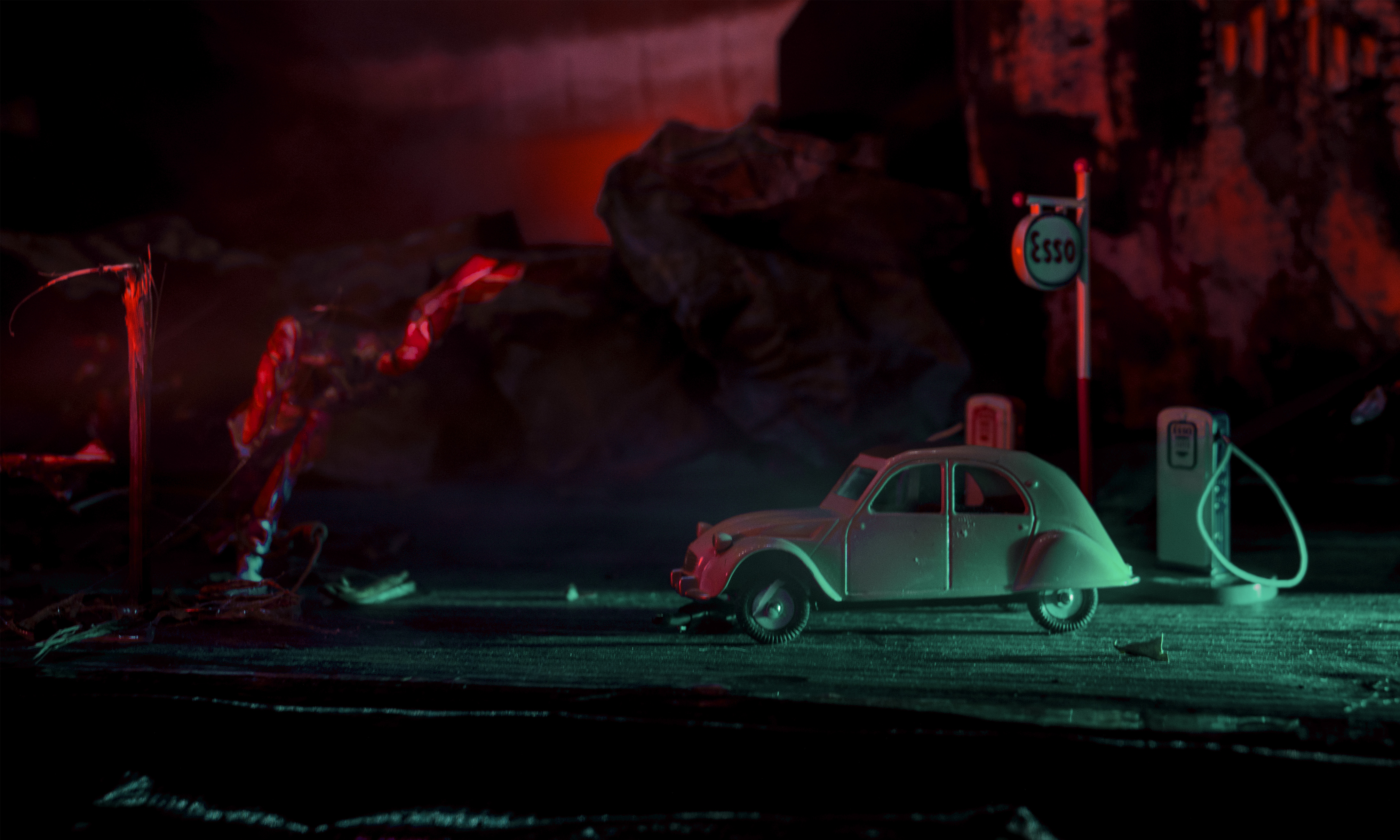 The colors of this new fictional universe, which takes shape a little more with each new image, are deliberately saturated and almost unreal. They serve as a formal thread for a journey where each image becomes an uncertain map—a simulacrum that reveals more about our relationship to the world than about the world itself.